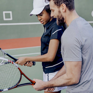 Playing tennis